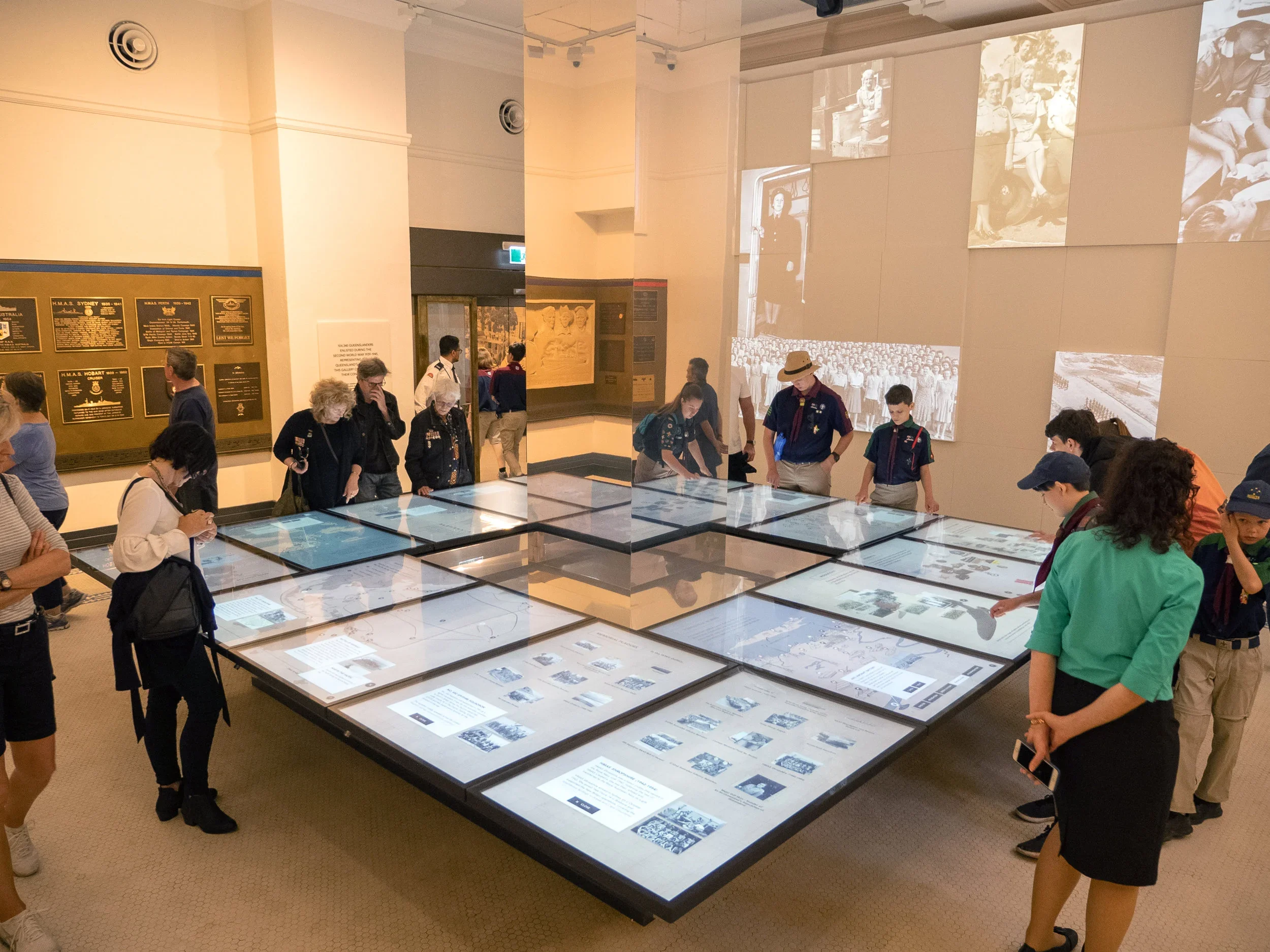 The project included the development of a 16-screen touchtable, projection-mapped surfaces, videos, touchwalls and an integrated education program highlighting collections and stories from the war.
