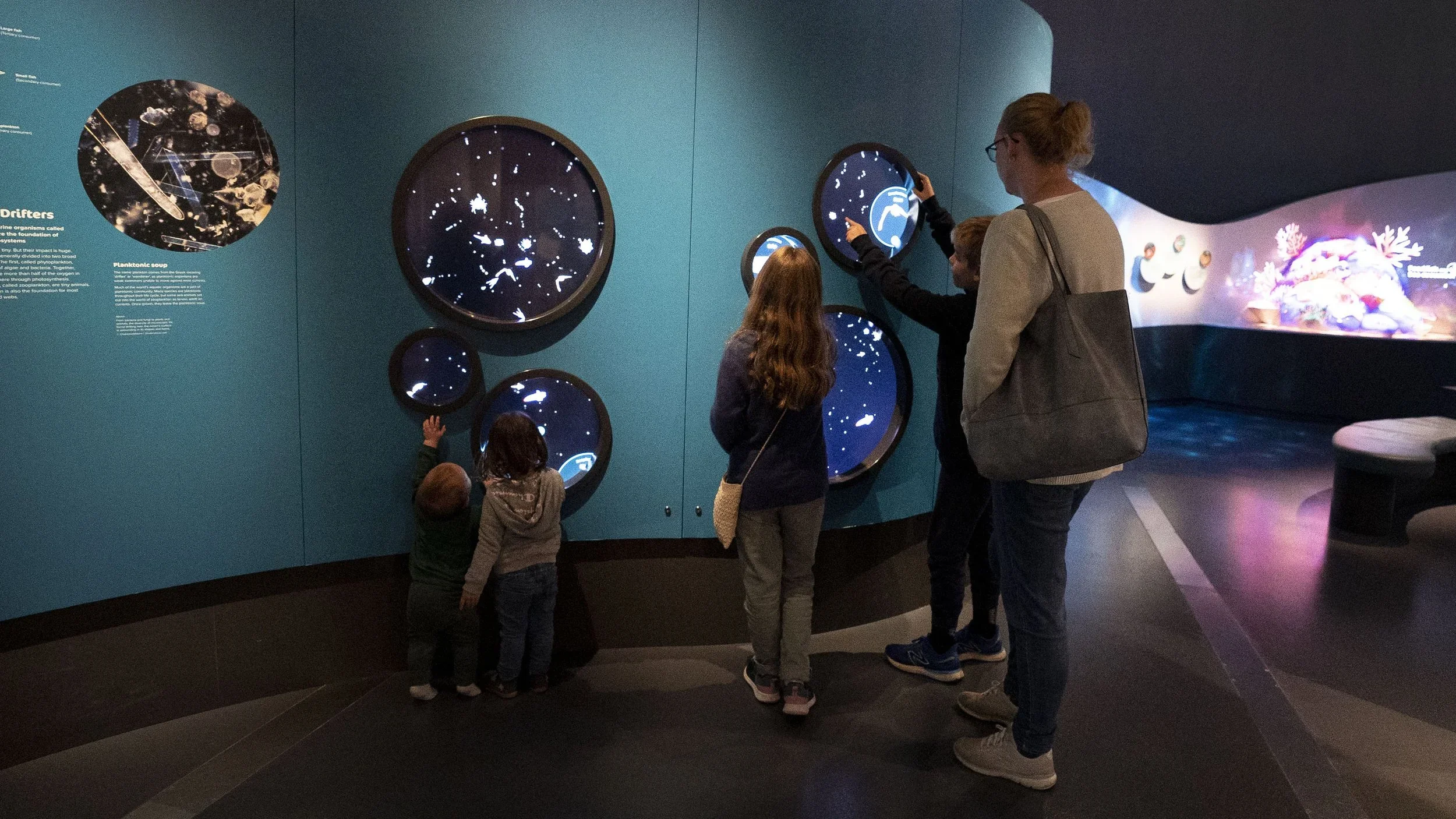 Other touchscreen interactives throughout the galleries include portals filled with floating animated plankton, map interactives, video players, automated car games, and creative design stations where visitors can assemble and decorate their own building, piece of pottery, clothing item, or create a quirky creation from a kit of collection objects. Our team also produced two circular projected touchtables highlighting trade and immigration between Western Australia and the world, a three-screen underwater video piece showcasing colourful corals and sponges, and an animated projection depicting the flow of the Leeuwin Current off the coast of Western Australia.