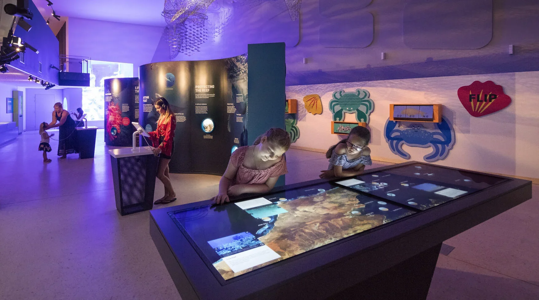 Lightwell created a suite of multimedia for the Ningaloo Centre in Western Australia. Featuring video interviews, touchscreens, projected interactives, multi-channel video pieces and an immersive cyclone experience, the Ningaloo Centre allows visitors to explore the region’s unique social history, ecological diversity and ongoing scientific work.
